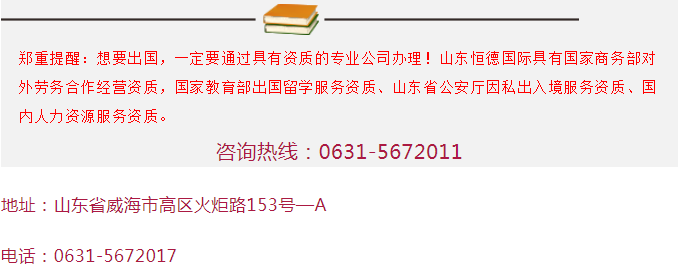 本站著重提醒:出國勞務、出國留學需謹慎,本公司擁有國家商務部批準的外派勞務資質,是國家教育部批準的自費出國留學中介服務機構。